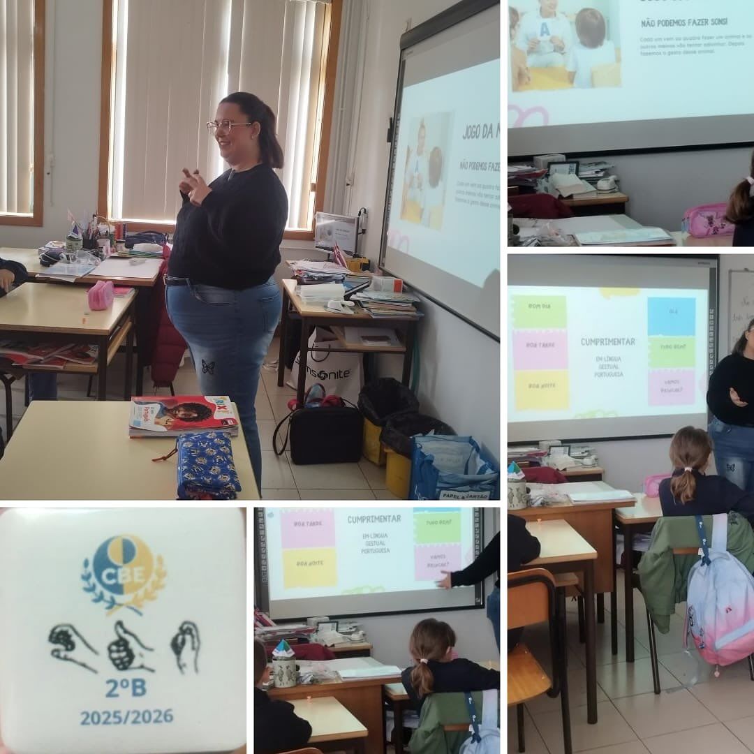 Ontem, os alunos do 2.⁰B tiveram a oportunidade de conhecerem um pouco da Lingua Gestual. Foi fantástica a descoberta de muitas palavras por uma familiar de um dos alunos que é intérprete de Língua Gestual!